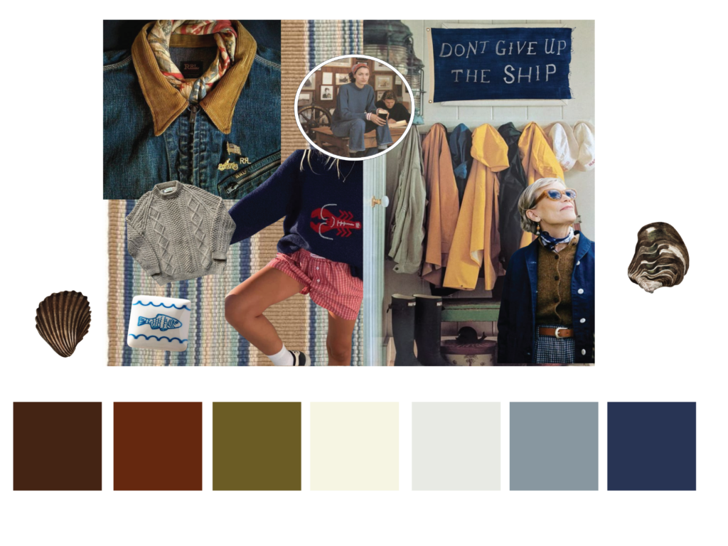 The vibe is nostalgic but fresh, mixing rugged charm with effortless elegance. What really gets us? The contrast color mixing. We’re obsessed with deep blues and warm browns, the perfect balance of sea and coffee, foggy mornings and cozy afternoons. It just feels right.